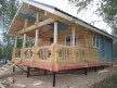 На террасе при условии что она есть делаем перила из строганной доски со всех сторон, столбы террасные также строганные, а не обрезки профилированного бруса с шипом и пазом. Домкратики на столбах для дальнейшей регулировки. Балясины будут сделаны аккуратно. Обратите внимание что в дешёвых случаях это может быть и будет просто вагонка прибирая к неотесанной доске снаружи и столбы будут не квадратные а просто профилированный брус как на видео.