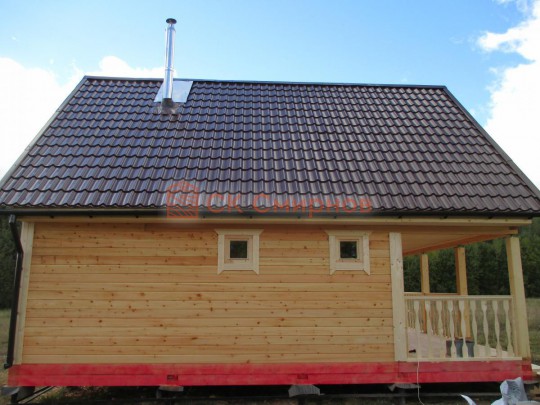 Такая с мансардой баня 6х6 может быть построена из бруса. Ориентировочный срок строительства 17 дней.