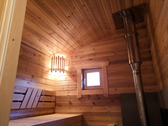 В данной бане мы используем окна вытянутой формы не открывающиеся по умолчанию, но можно за небольшую доплату сделать их открывающимися.