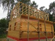Из профилированного сухого бруса 9х14см, 14х14 см или 14х19 см. Сборка сруба в теплый угол на нагеля или гвозди 200 мм со сверлением отверстия в верхнем брусе (в зависимости от вида бруса).