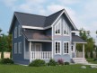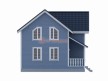 На фото представлен проект жилого дома из бруса №260 габаритами 8х9 метров и отличной планировкой общей площадью 134 квадратных метров. Можно выделить несколько особенностей проекта: терраса, туалет, ванная, санузел, панорамные окна, два входа и две террасы. Первый этаж — это сруб из бруса, рекомендуем заказывать из сухого или клееного. Мансарда собирается по каркасной технологии.