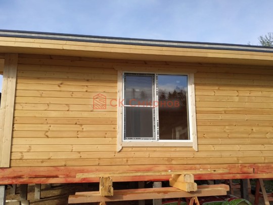 140х190Из профилированного бруса естественной влажности 9х14см, 14х14 см или 14х19 см. Сборка сруба в теплый угол на нагеля или гвозди 200 мм со сверлением отверстия в верхнем брусе (в зависимости от вида бруса).