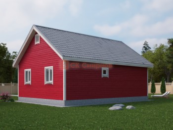 Из профилированного клееного бруса 9х14см, 14х14 см или 14х19 см. Сборка сруба в теплый угол на нагеля или гвозди 200 мм со сверлением отверстия в верхнем брусе (в зависимости от вида бруса).