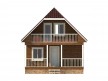 На фото представлен проект деревянного дома №90 габаритами 6х8 метров и отличной планировкой общей площадью 80 квадратных метров. Можно выделить несколько особенностей проекта: терраса, веранда. Дом с мансардой, может использоваться как дачный.