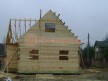 Из профилированного сухого бруса 9х14см, 14х14 см или 14х19 см. Сборка сруба в теплый угол на нагеля или гвозди 200 мм со сверлением отверстия в верхнем брусе (в зависимости от вида бруса).
