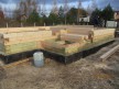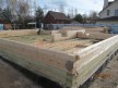 Из 9х14см, 14х14 см или 14х19 см. Сборка сруба в теплый угол на нагеля или гвозди 200 мм со сверлением отверстия в верхнем брусе (в зависимости от вида бруса).