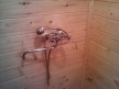 Главная проблема брусовых домов — усадка, после которой в срубе возникают щели в палец толщиной. Так случается, когда строят из дешёвого сырого бруса, плотно сажая венцы на гвозди (деревянные или металлические — без разницы). Мы же тратим время на сборку со сверлением. То есть сажаем брусья на металлические гвозди и в верхнем венце высверливаем отверстие под каждую шляпку. Поэтому во время усадки бруски не зависают на гвоздях, деформируя сруб, а свободно по ним скользят. Технология трудо- и времязатратная, но результат потрясающий — даже в срубах из сырого бруса практически нет щелей.