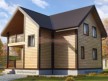 На фото представлен проект надёжного дома №232 габаритами 7.5х8 метров и отличной планировкой общей площадью 108 квадратных метров. Можно выделить несколько особенностей проекта: терраса, балкон, туалет, ванная, санузел, котельная. Такой дом может использоваться как зимний. Это полноценный коотедж для постоянного проживания семьёй 3-4 человека.